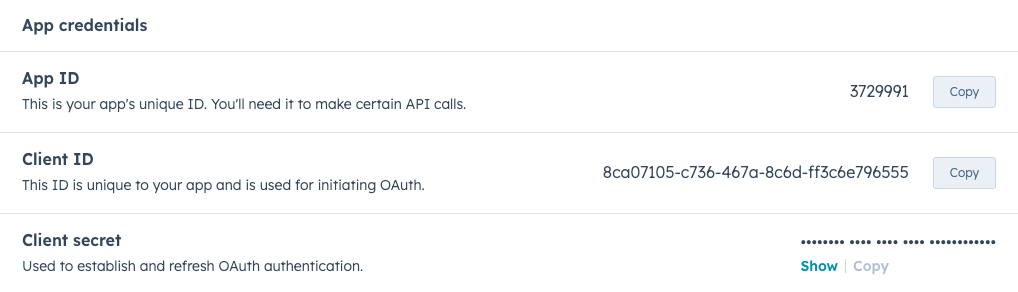 A HubSpot app is a container for your integration settings and is where you'll create and find your OAuth 2 credentials.