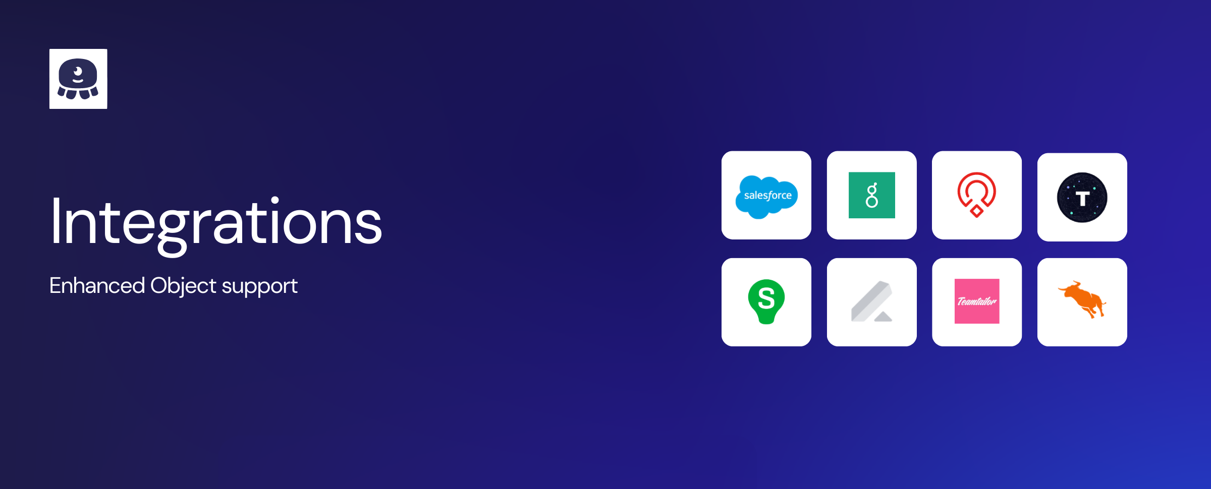 In addition to Document, we've expanded Object support for several integrations. Here's what's new: