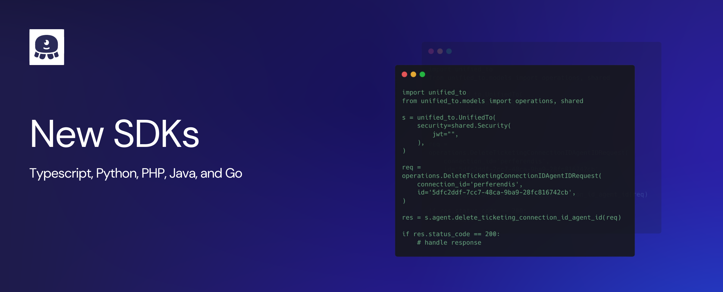 Unified.to just became even more flexible. We now have five SDKs (software development kits) for seamless access to our API. Choose from Typescript, Go, PHP, Java, and Python. The best part? Our SDKs update automatically whenever we expand our Unified APIs. You'll always benefit from the latest features and enhancements, without the burden of manual updates.