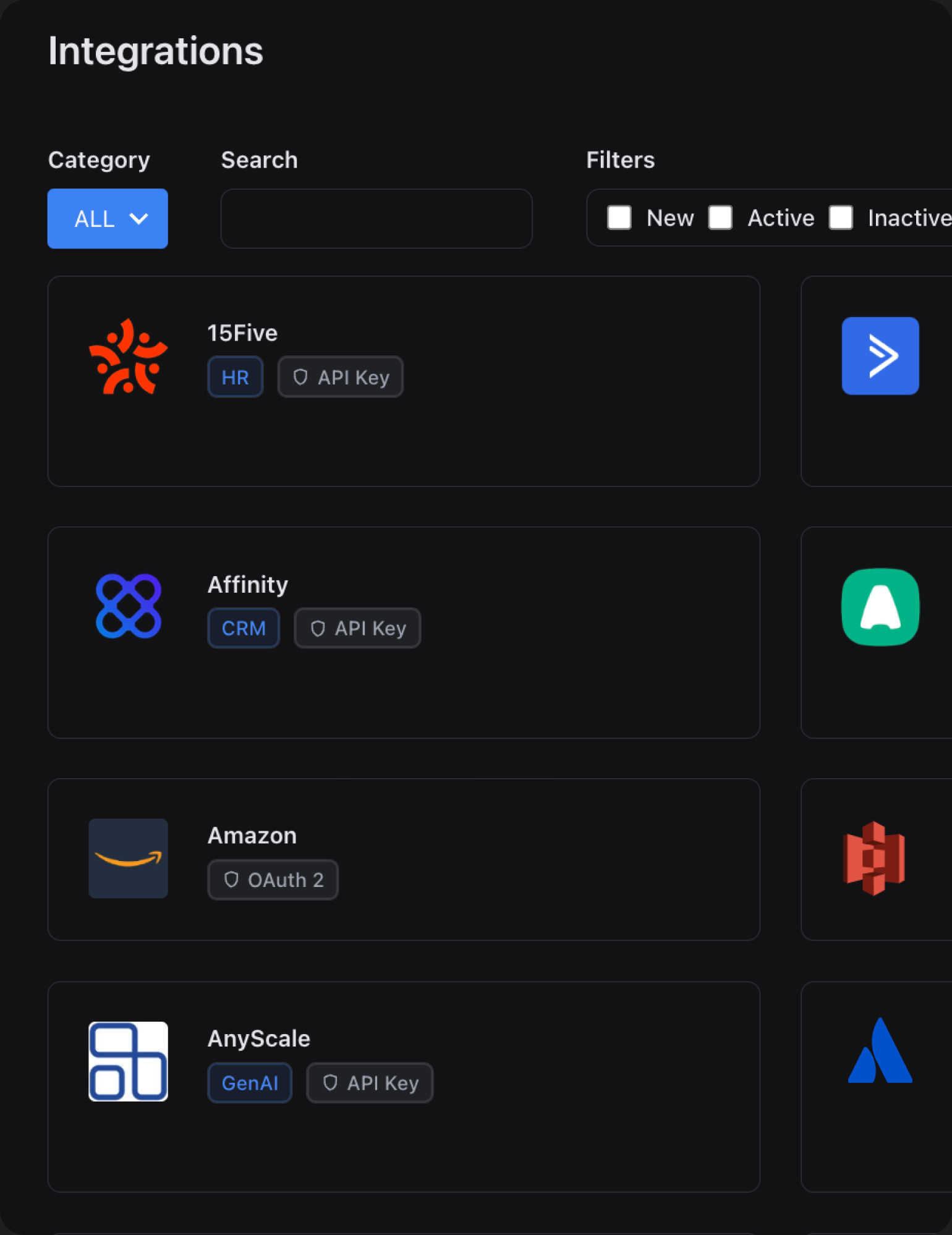 Enable integrations across 21 API categories, from CRM to Accounting and Messaging.