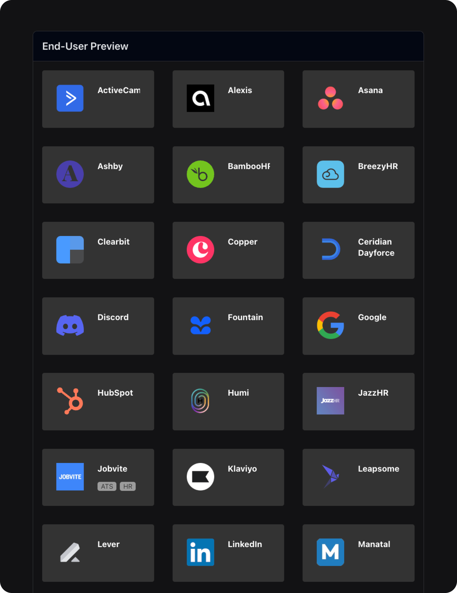 Unlock your customers' data from 353 sources across 21 categories — built for B2B SaaS and AI-native products using a real-time, unified API + MCP.